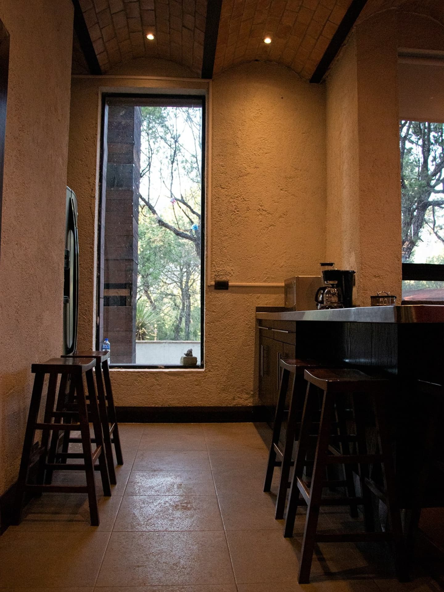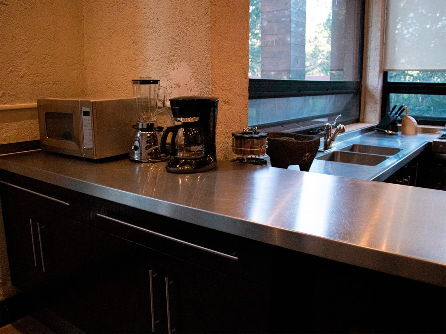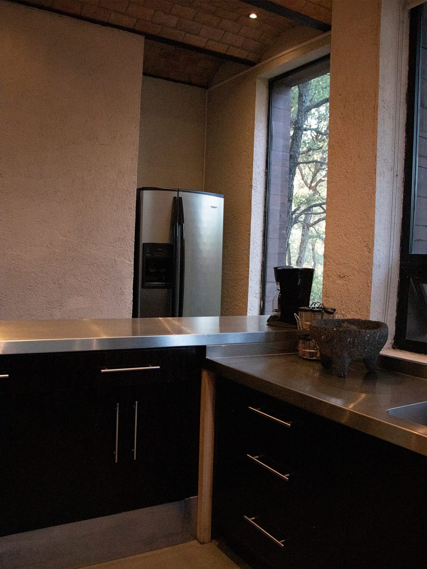 Dentro de la cabaña contamos con estufa, microondas, licuadora, cafetera, molcajete.